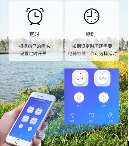 定時/延時兩種時間模式控制,肯有定控制功能,每一路精準控制設備狀態,通過手機APP添加。
