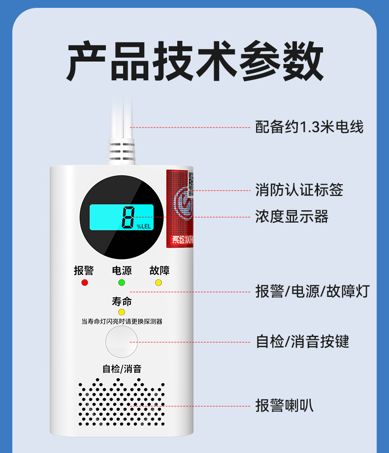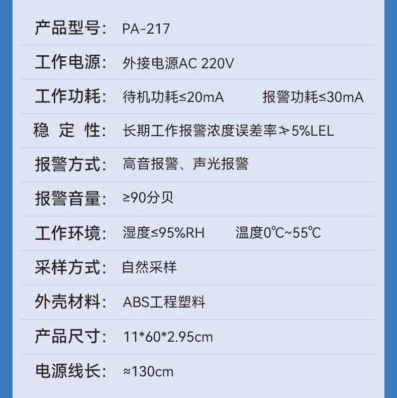 燃氣報警器 (型號PA-217) 產品規(guī)格 功能特點 資料下載 燃氣報警器 (型號PA-217)1、多種氣體檢測2、90分貝高音報警3、探測靈敏4、故障質檢(泄露報警、 正常工作、 故障提醒)5、聯(lián)動切斷燃氣6、中國平安保險適用場景:適用于家庭廚房、酒店廚房、食堂、商場等場所