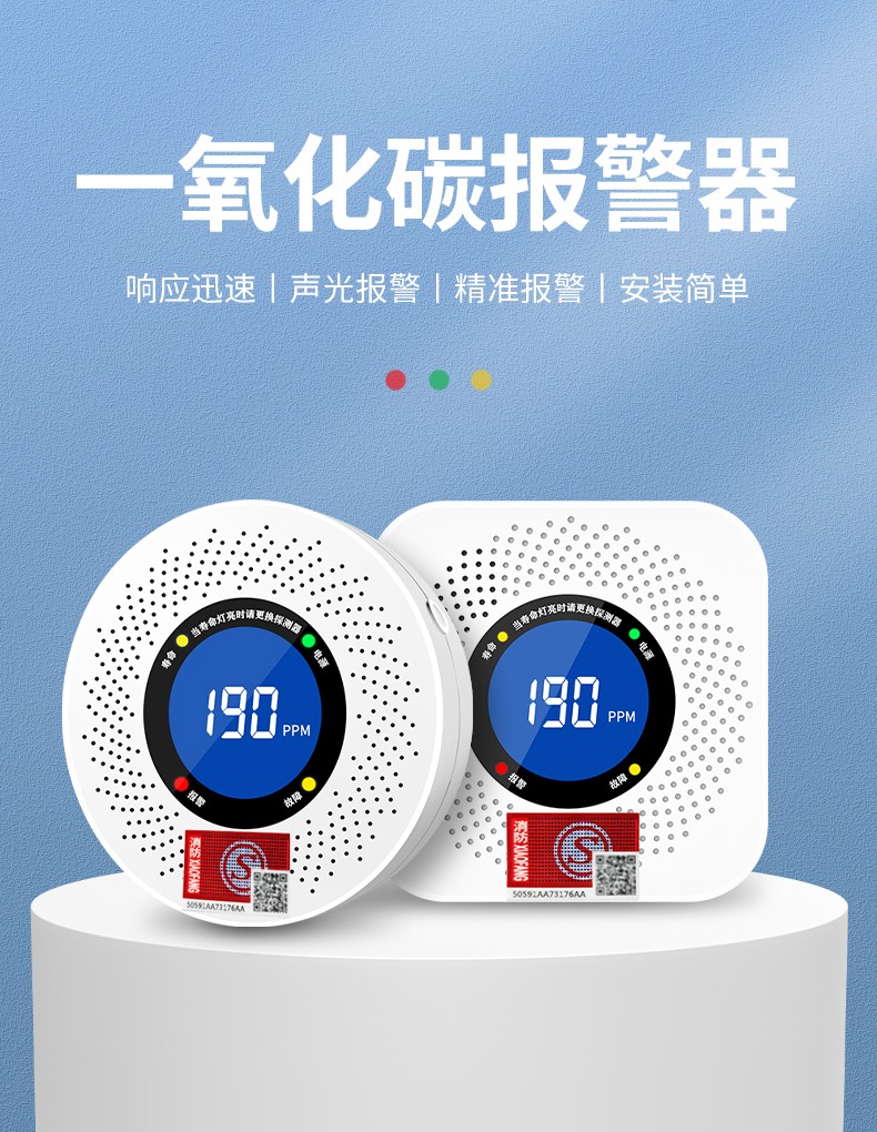 一氧化碳報警器(型號PA-007) 產品規格 功能特點 資料下載 一氧化碳報警器(型號PA-007)1.探測氣體:一氧化碳2.報警方式:高音報警、聲光報警3.材質:ABS阻燃材質4.產品保險:1000萬承險適用場景:適用于廚房、浴室、起居室、火鍋包廂、飯堂等長時間空氣不流通的場所安裝一氧化碳報警探測器