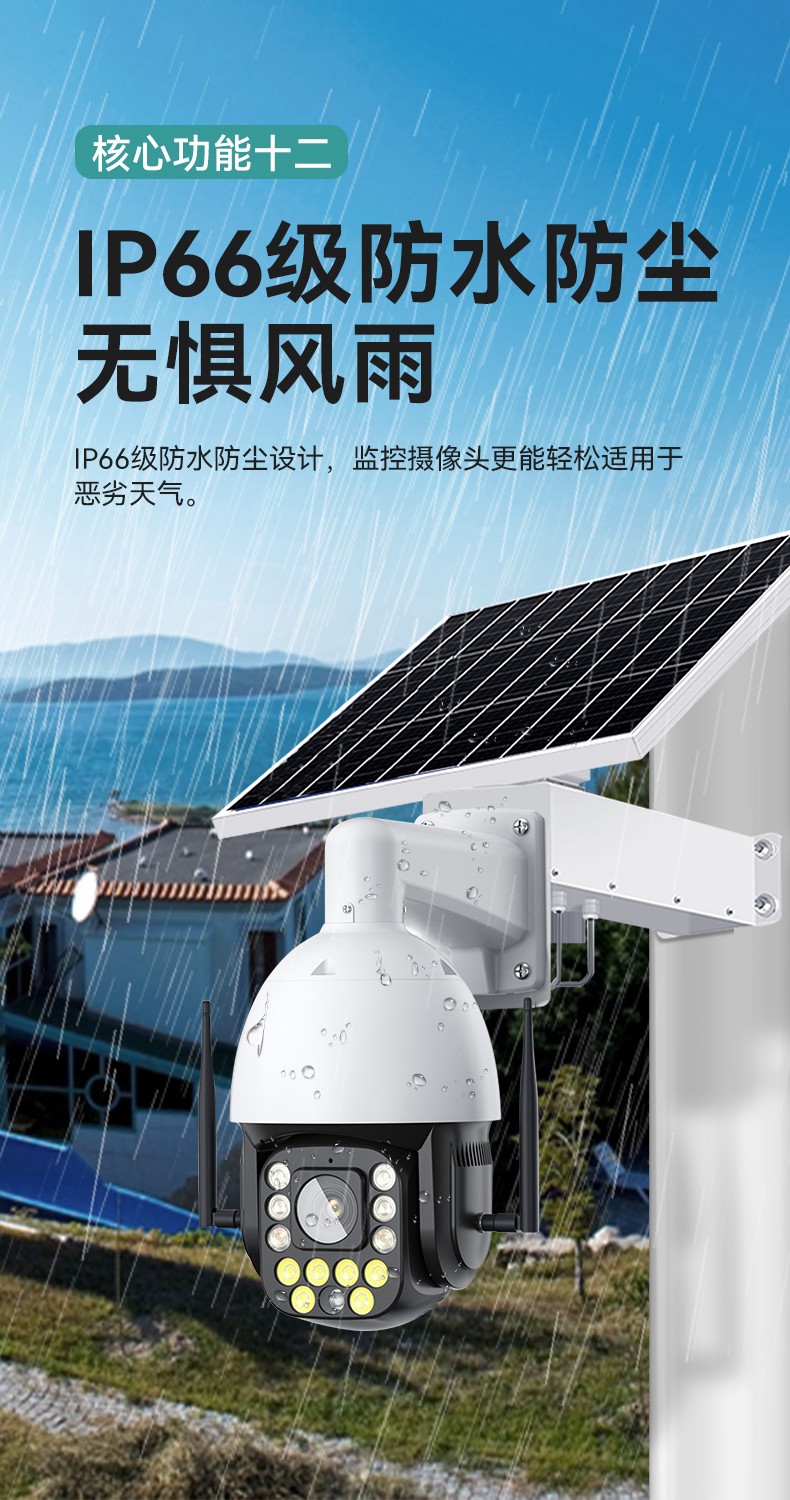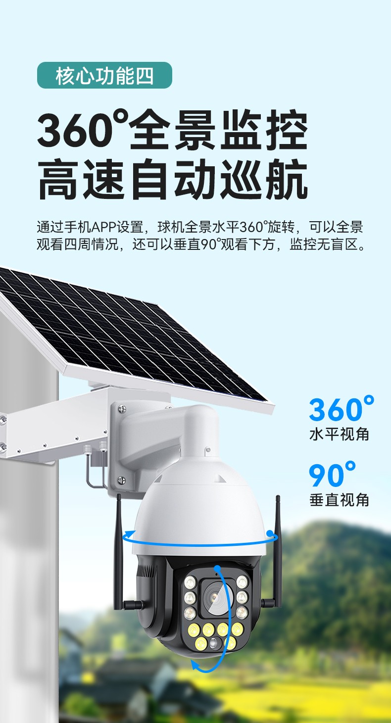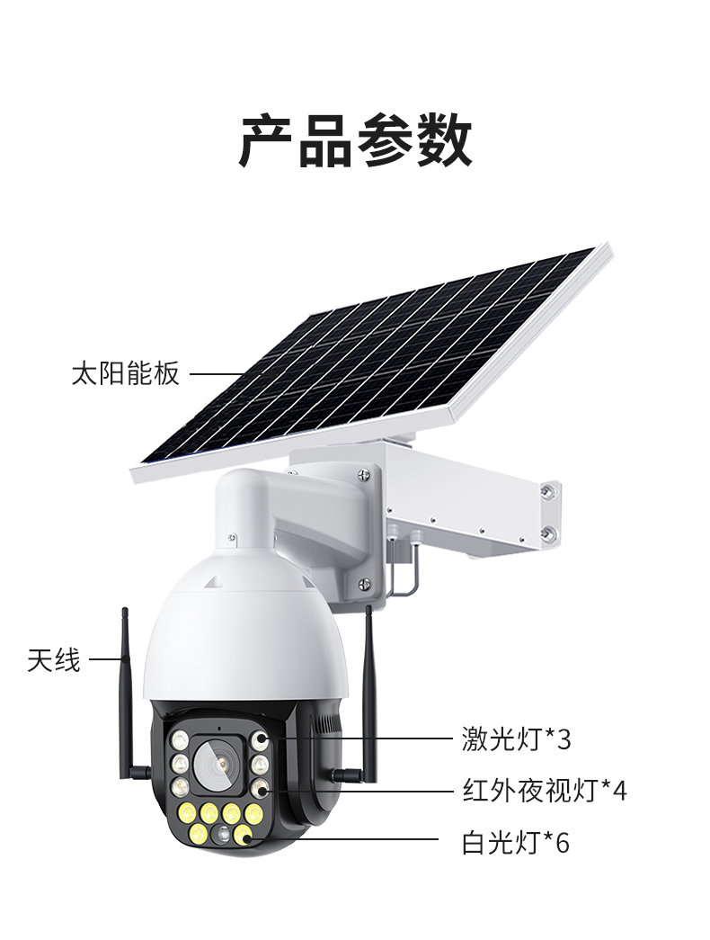 4G 太陽能監(jiān)控攝像頭(YS-W60) 產品規(guī)格 功能特點 資料下載 4G 太陽能監(jiān)控攝像頭(YS-W60)1.視角范圍:水平360°垂直90°2.日夜轉換模式:自動ICR紅外濾片3.電源:光電兩用,太陽能+內置鋰電池供電4.防水等級:IP66級5.存儲方式:支持TF卡,云存儲6.安裝方式:底座安裝(壁裝)7.材質:金屬8.無需寬帶、無需電源、即插即用、插上4G流量卡9.180倍光學變焦、500萬高清畫質10.遠程監(jiān)控,手機實時查看11.實時移動偵測,語音報警適用場景:魚塘、果園、養(yǎng)殖場、山區(qū)等