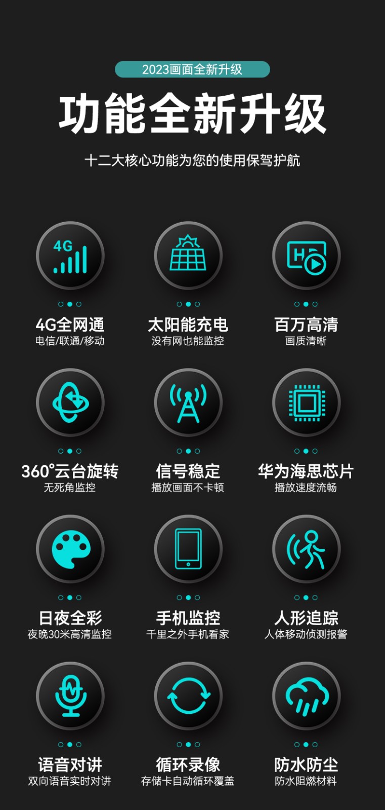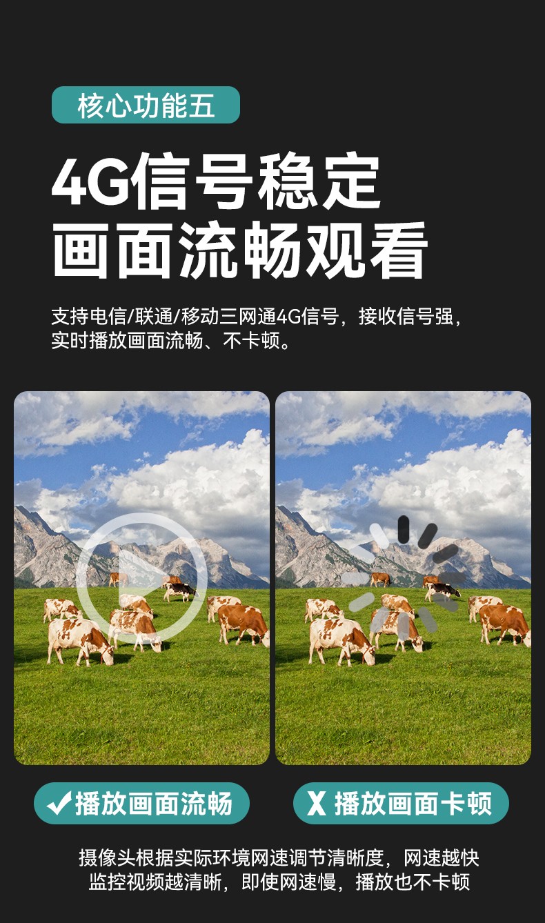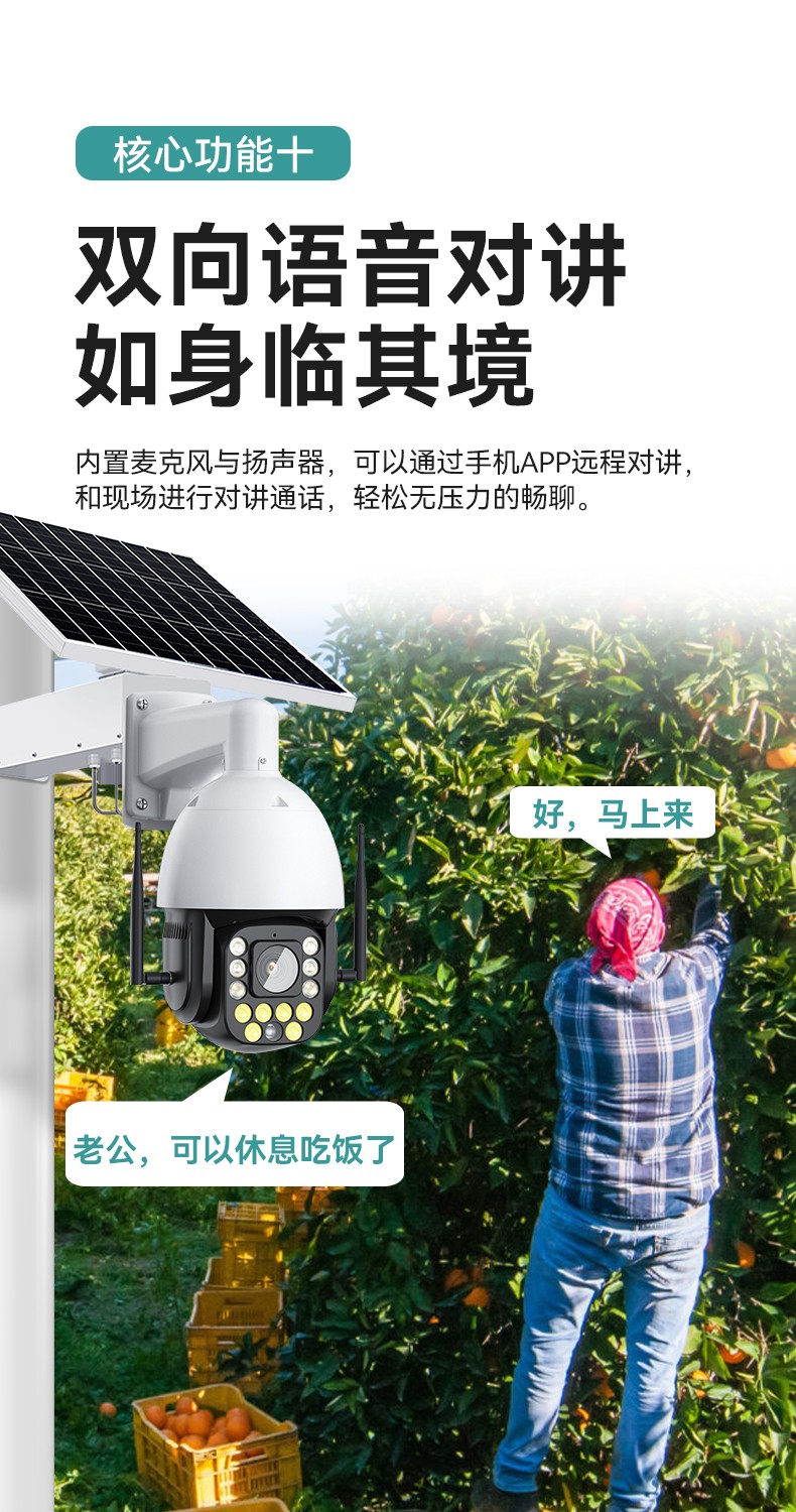 4G 太陽能監(jiān)控攝像頭(YS-W60) 產品規(guī)格 功能特點 資料下載 4G 太陽能監(jiān)控攝像頭(YS-W60)1.視角范圍:水平360°垂直90°2.日夜轉換模式:自動ICR紅外濾片3.電源:光電兩用,太陽能+內置鋰電池供電4.防水等級:IP66級5.存儲方式:支持TF卡,云存儲6.安裝方式:底座安裝(壁裝)7.材質:金屬8.無需寬帶、無需電源、即插即用、插上4G流量卡9.180倍光學變焦、500萬高清畫質10.遠程監(jiān)控,手機實時查看11.實時移動偵測,語音報警適用場景:魚塘、果園、養(yǎng)殖場、山區(qū)等