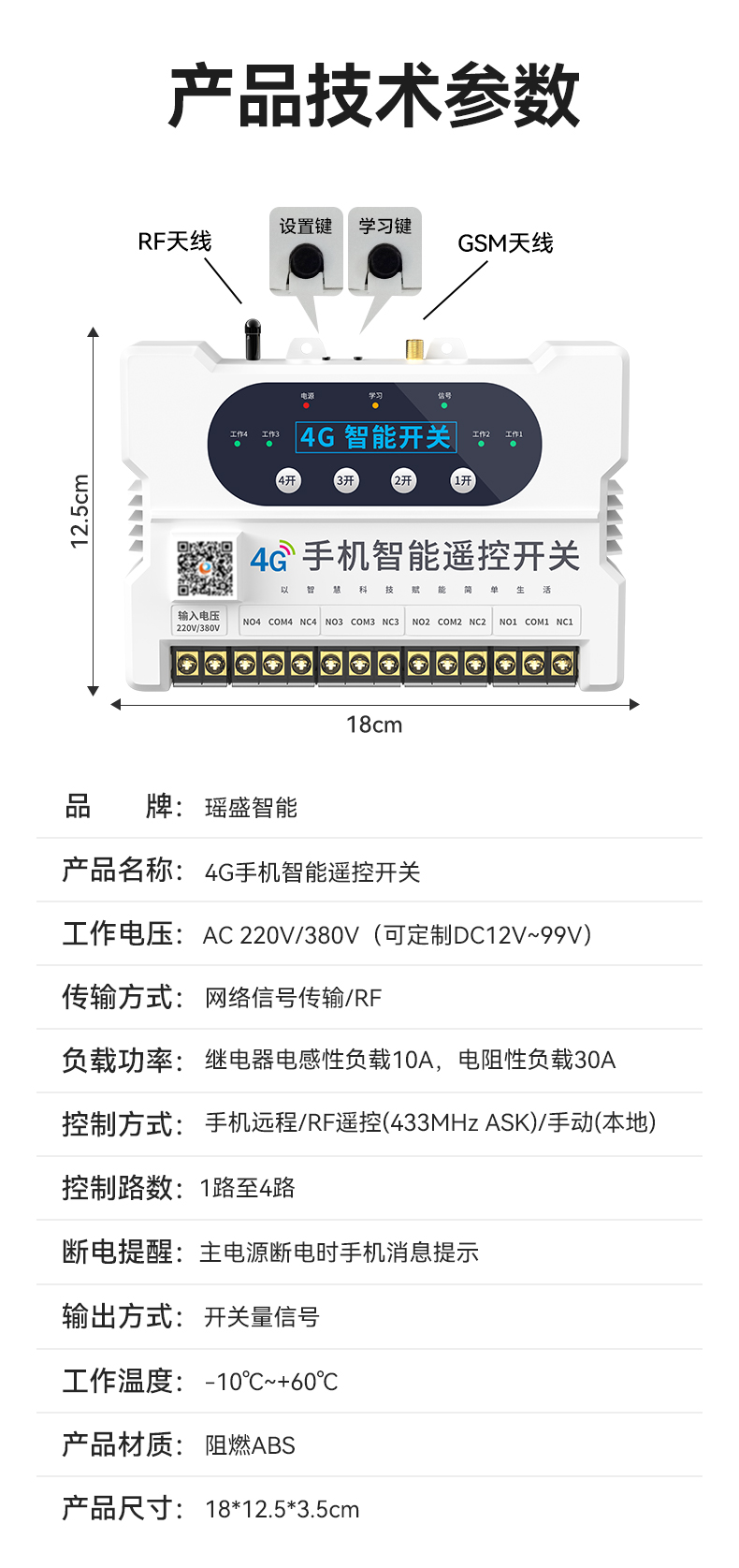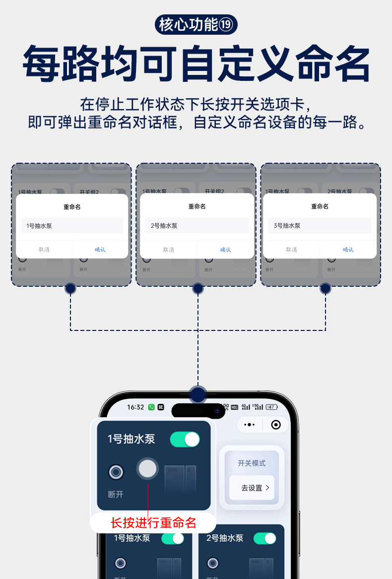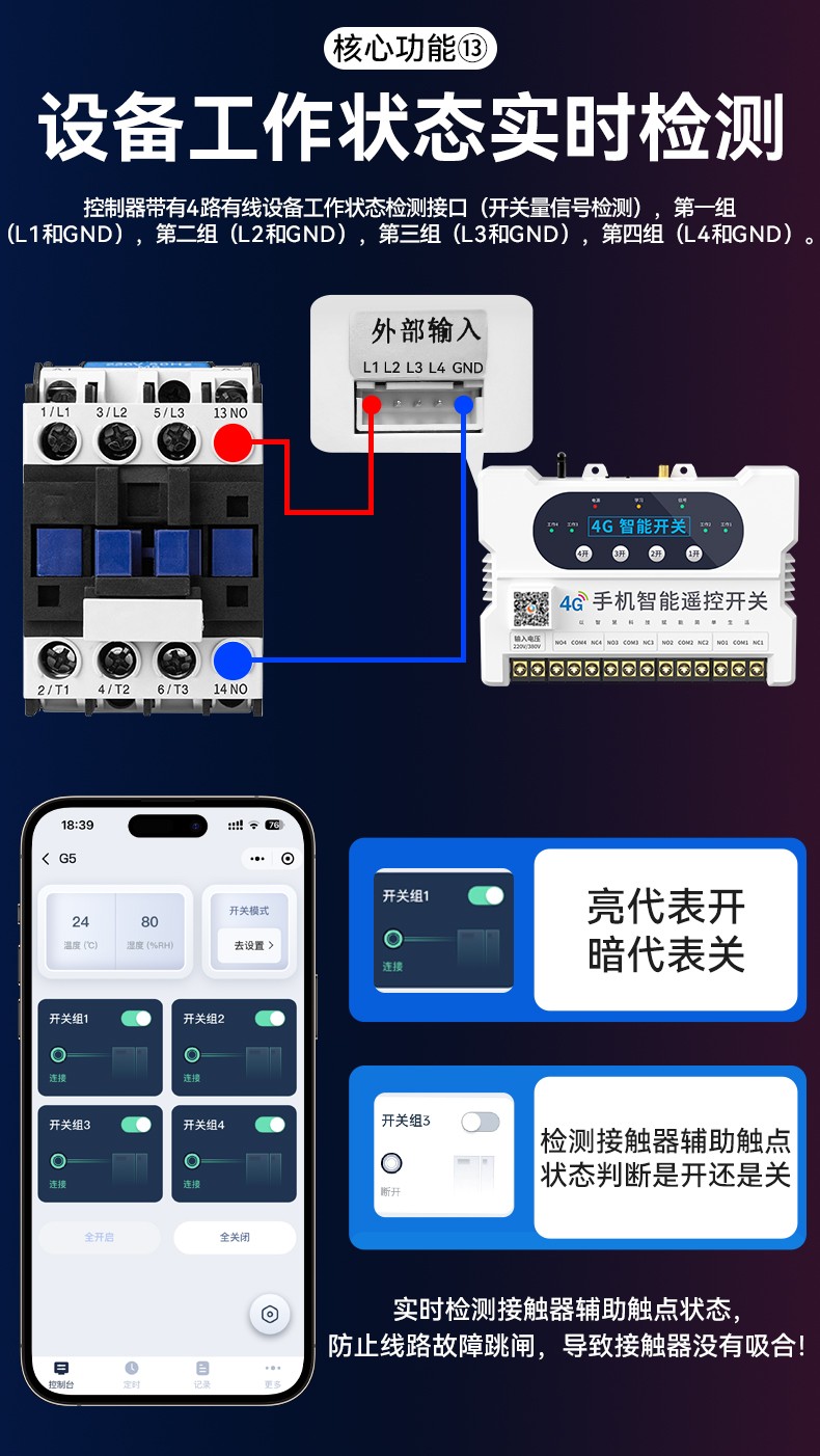 4G遠(yuǎn)程控制開關(guān)(YS-A8) 產(chǎn)品規(guī)格 功能特點(diǎn) 資料下載 4G遠(yuǎn)程控制開關(guān)(YS-A8)無需流量、無需插卡 、無需WIFI手機(jī)小程序控制定時開關(guān):云端定時 、本地定時、 倒計時多人控制斷電提醒 +信息推送狀態(tài)檢測三種工作模式自動切換:點(diǎn)動模式 、互鎖模式 、自鎖模式工作電壓: 220v/380v (可選)應(yīng)用場景:正反轉(zhuǎn)、水泵、啟動柜、變頻器 、魚塘增氧機(jī)、抽水泵、工業(yè)電機(jī)、燈具電器等